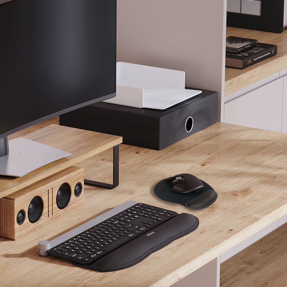 Mousepad Ergonômico P.U Preto ajuda a manter os pulsos em uma posição neutra e confortável, o que é essencial para quem passa muito tempo no computador.